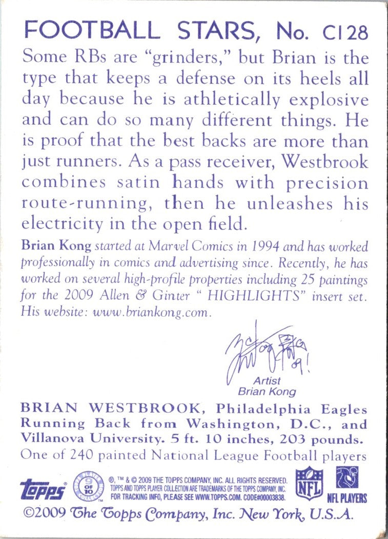 This 2009 Topps National Chicle Brian Westbrook #C128 card is a must-have for any Philadelphia Eagles fan! This card features a sharp full-color photo of Westbrook in his classic blue-and-white uniform, making it a great addition to any collection. The card is printed with a glossy finish that brings out all the colors and details of the photo. It's a fantastic piece of memorabilia that celebrates one of the greatest Eagles of all-time!