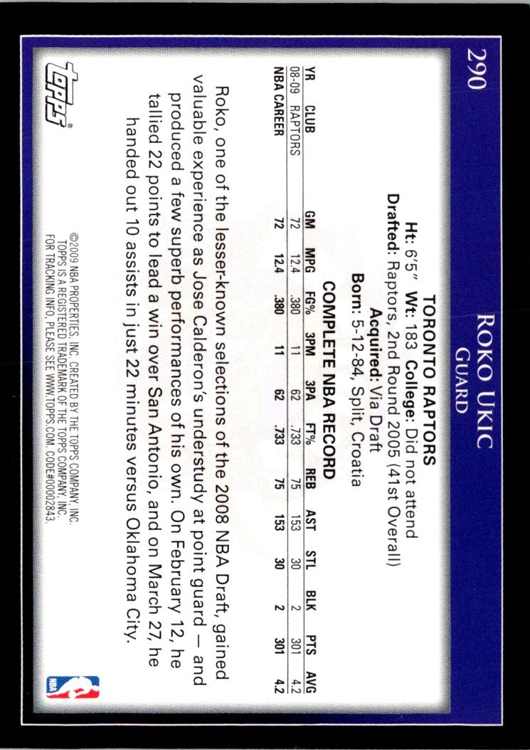 This 2009 Topps Roko Ukic #290 Toronto Raptors card is the perfect choice for any Raptors or NBA fan. Featuring a crisp, full-color photograph of Ukic in his Toronto uniform, this card captures the power and finesse of the former Raptors guard. With a glossy finish and protective coating, this card is sure to last in any collection. Add this card to your collection to commemorate Ukic's career with the Raptors!