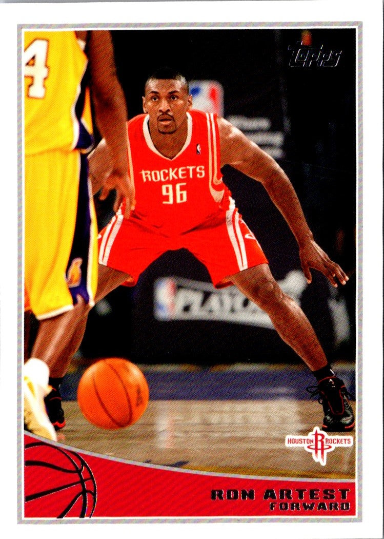 This 2009 Topps Ron Artest #94 Houston Rockets card is a must-have for any basketball fan. Featuring an action shot of Artest in his Rockets uniform, this card captures the passion and intensity of the NBA in a single image. With its glossy surface and vibrant colors, the card will make a great addition to any collection. Get your hands on this fantastic piece of basketball history today!