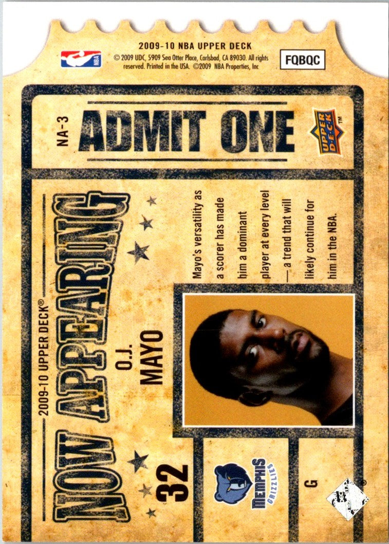 Description: 2009 Upper Deck Now Appearing O.J. Mayo #NA-3