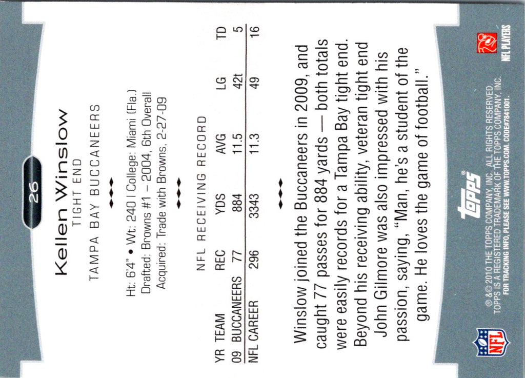 Description: 2010 Topps Platinum Kellen Winslow #26