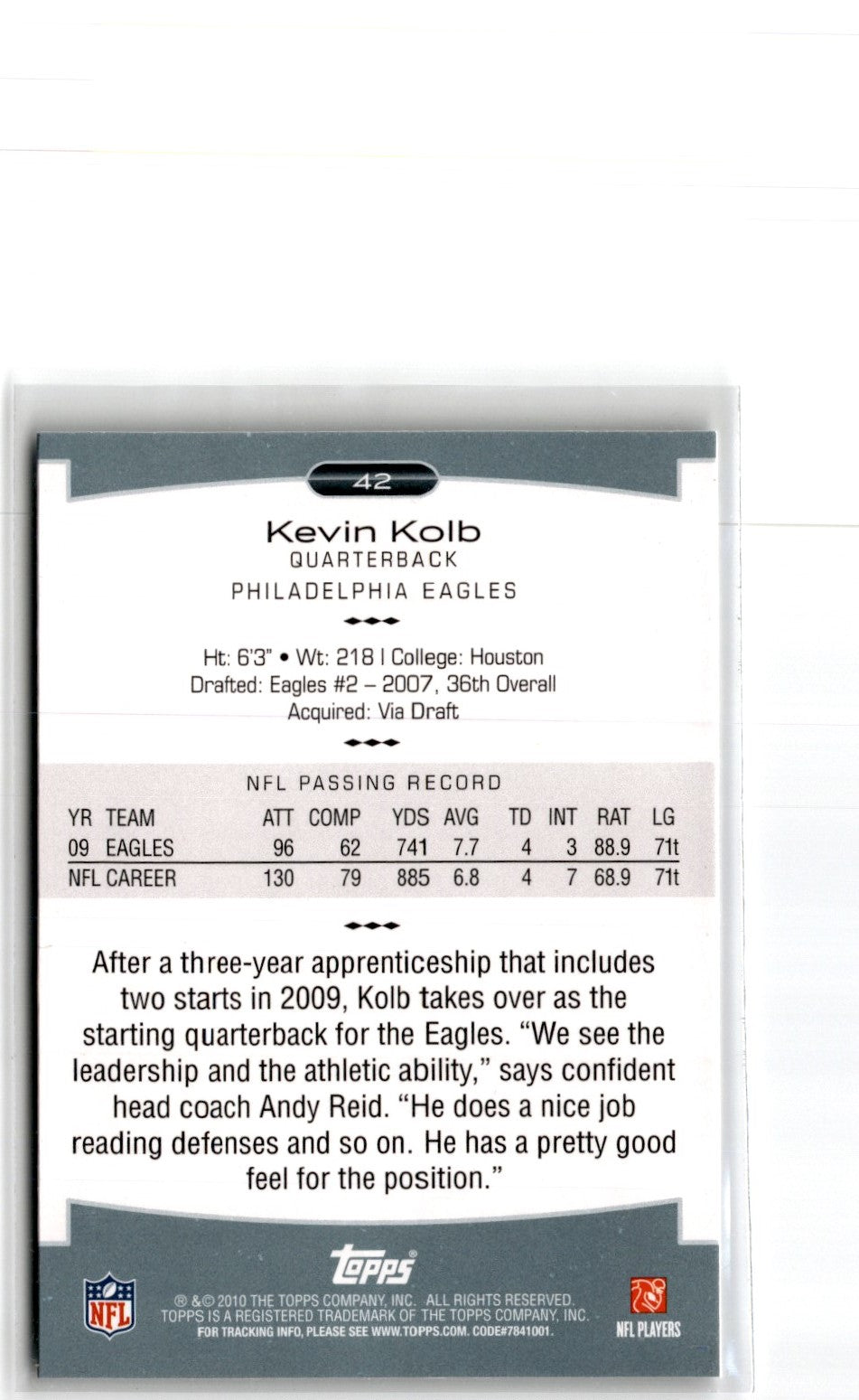 Description: 2010 Topps Platinum Kevin Kolb #42