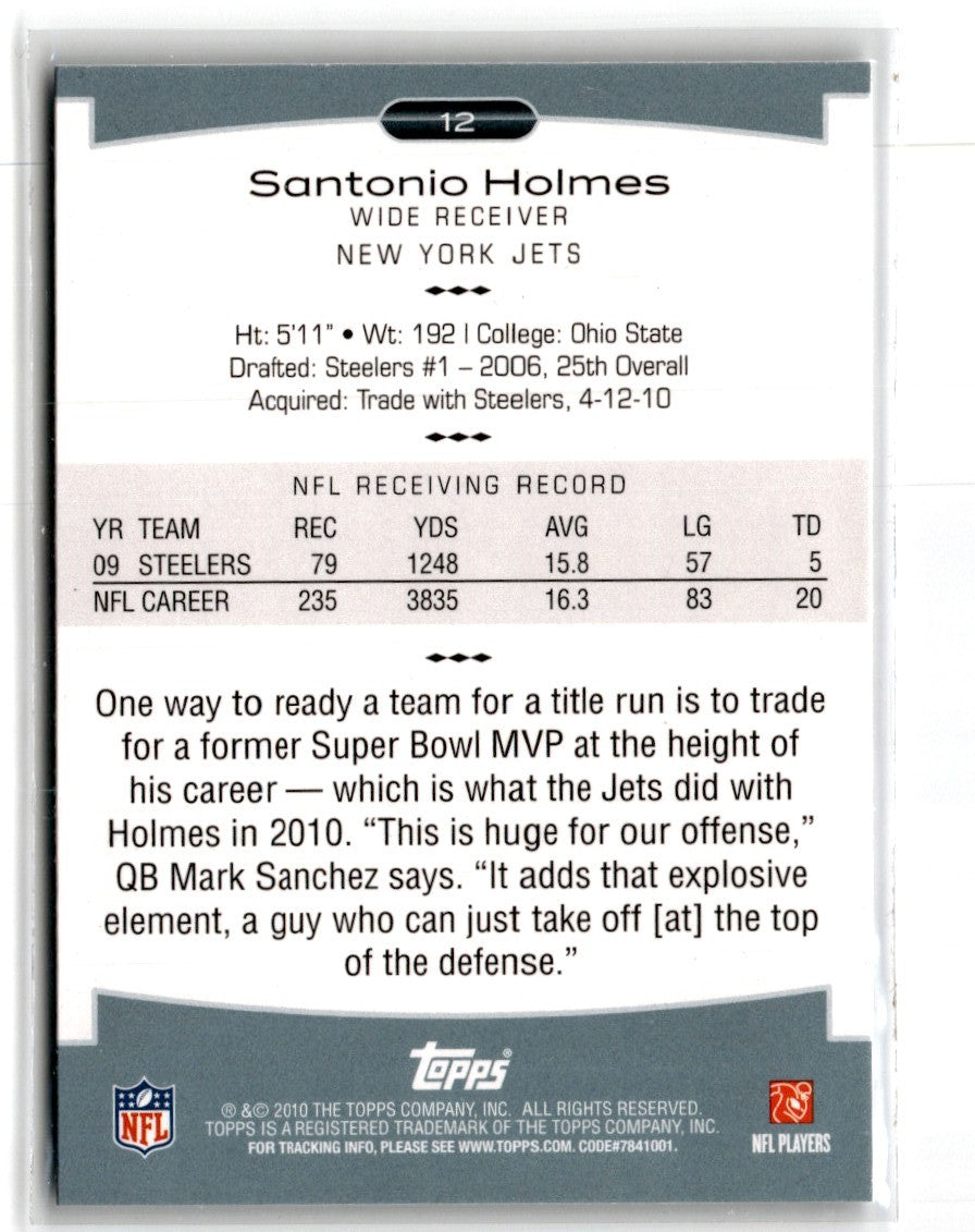 Description: 2010 Topps Platinum Santonio Holmes #12
