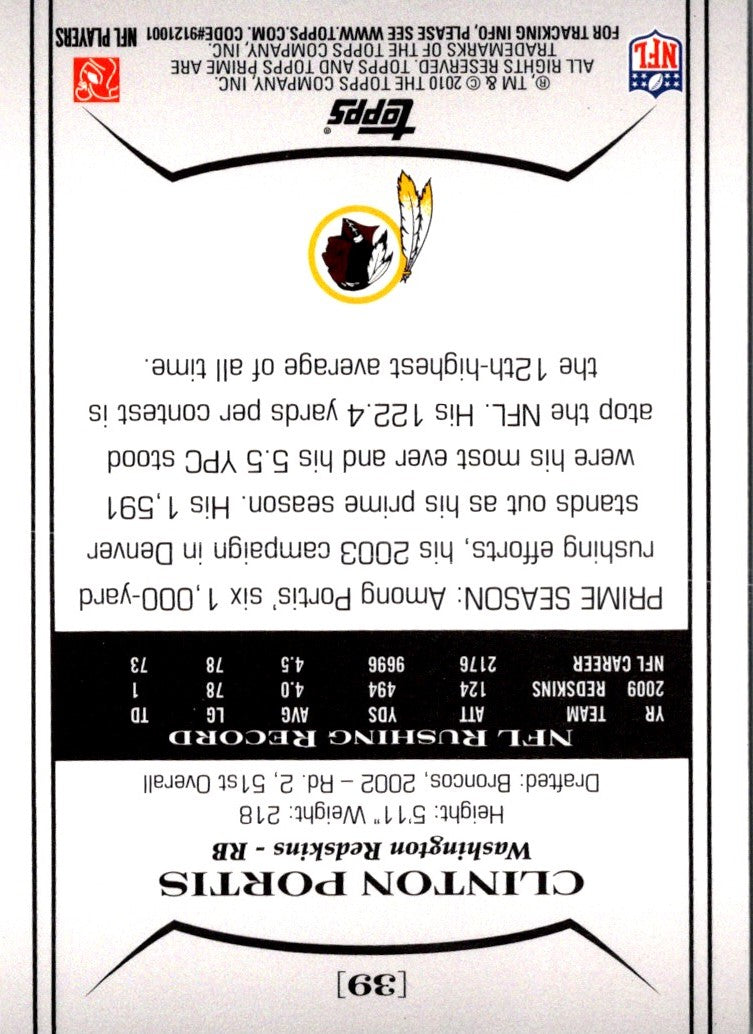 2010 Topps Prime Clinton Portis #39