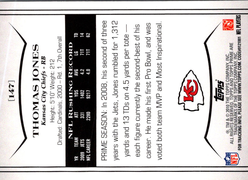 2010 Topps Prime Thomas Jones #147