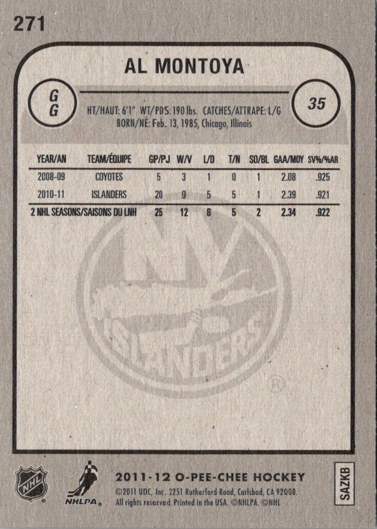 This 2011 O-Pee-Chee Al Montoya #271 New York Islanders card is a must-have for any hockey fan! Featuring the talented goaltender in action, this card is sure to become a prized part of your collection. With beautifully detailed artwork and a glossy finish, this card will make a great addition to any Islanders fan's collection. Show your support for the team and add this card to your collection today!