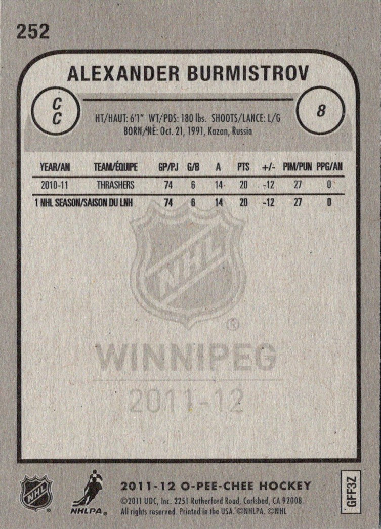 Description: 2011 O-Pee-Chee Alexander Burmistrov #252