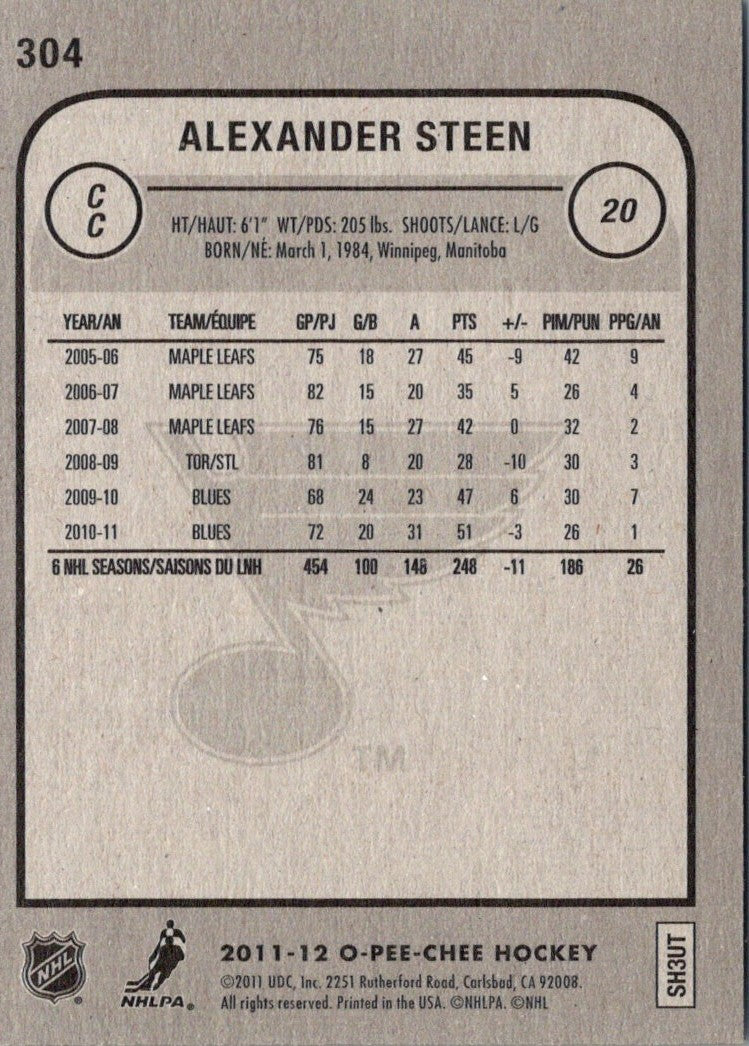 2011 O-Pee-Chee Alexander Steen #304