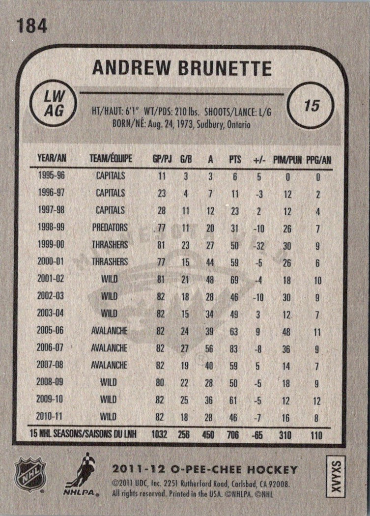 2011 O-Pee-Chee Andrew Brunette #184