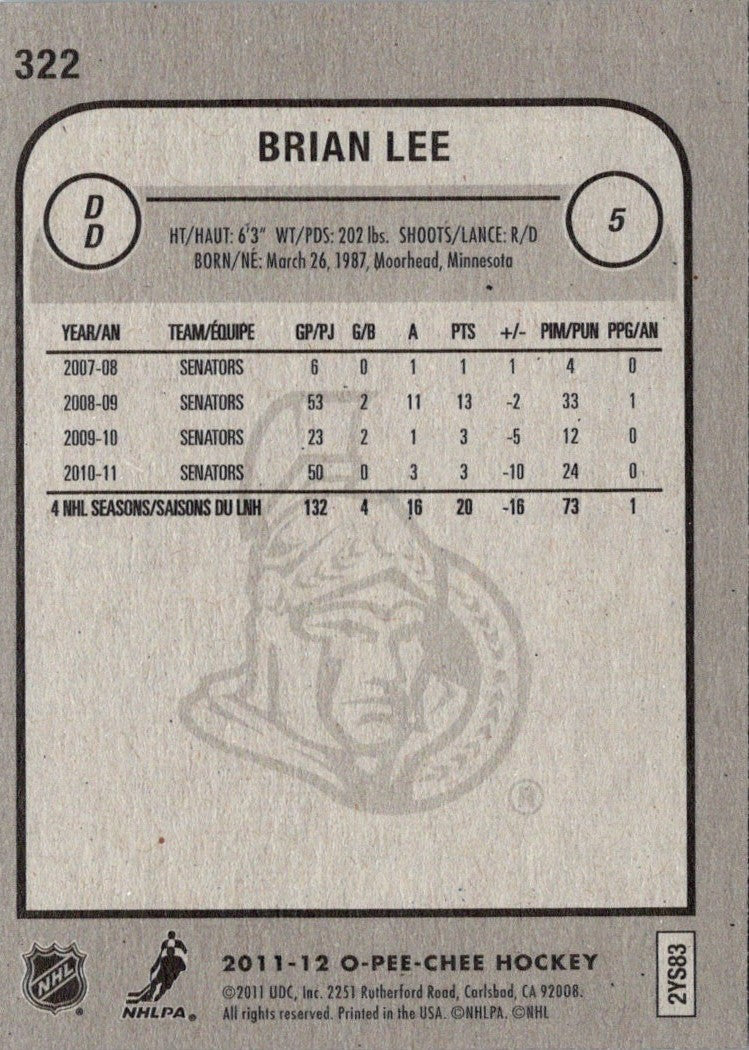 2011 O-Pee-Chee Brian Lee #322
