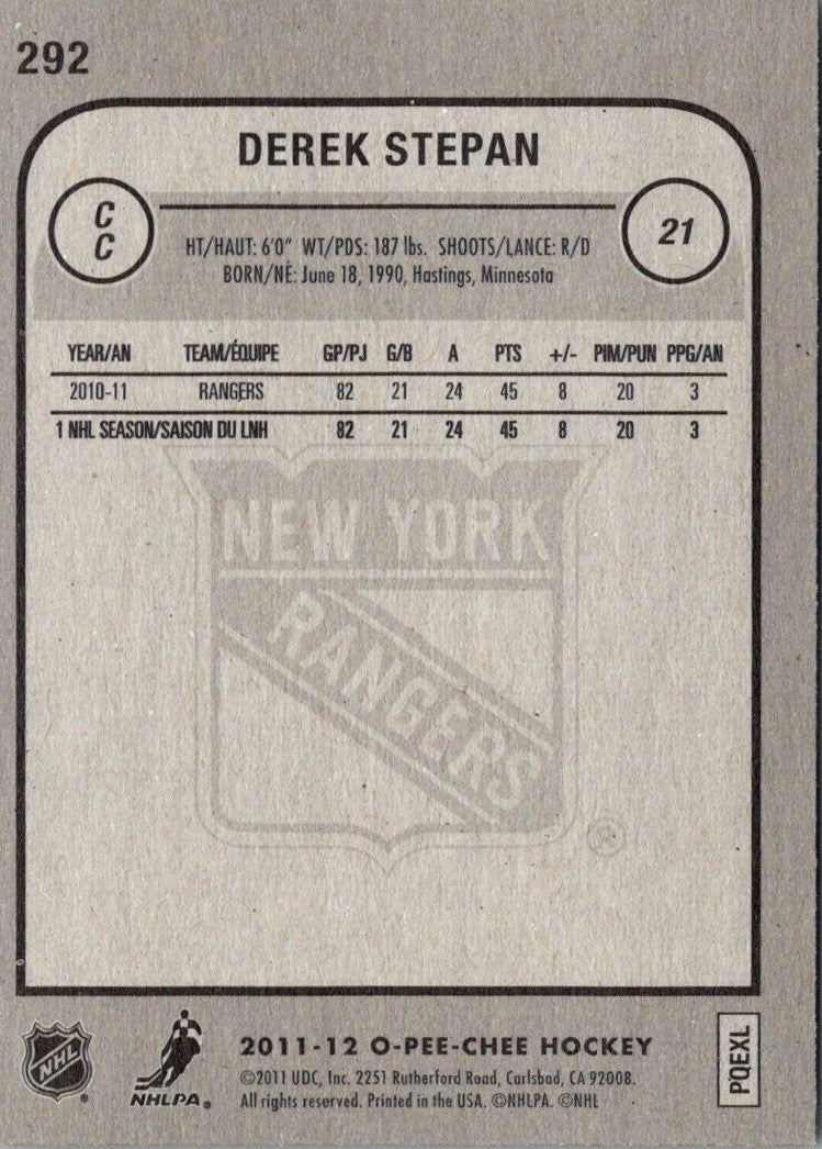 This 2011 O-Pee-Chee Derek Stepan #292 card of the New York Rangers is the perfect addition to any hockey collection. Stepan was an integral part of the Rangers' run to the Eastern Conference Finals in 2012, and this card captures him during his breakout season. The card features a classic image of Stepan in action on the ice, showcasing his great skills as a center. Show off your love for the Rangers and Stepan with this card!