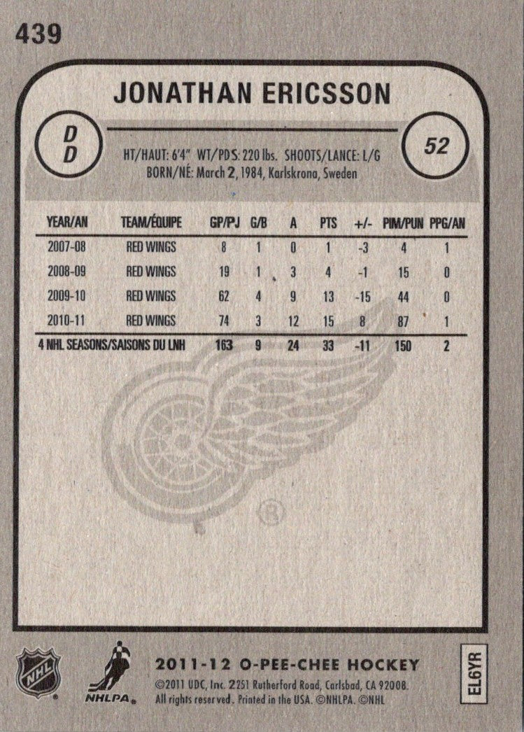 2011 O-Pee-Chee Jonathan Ericsson #439