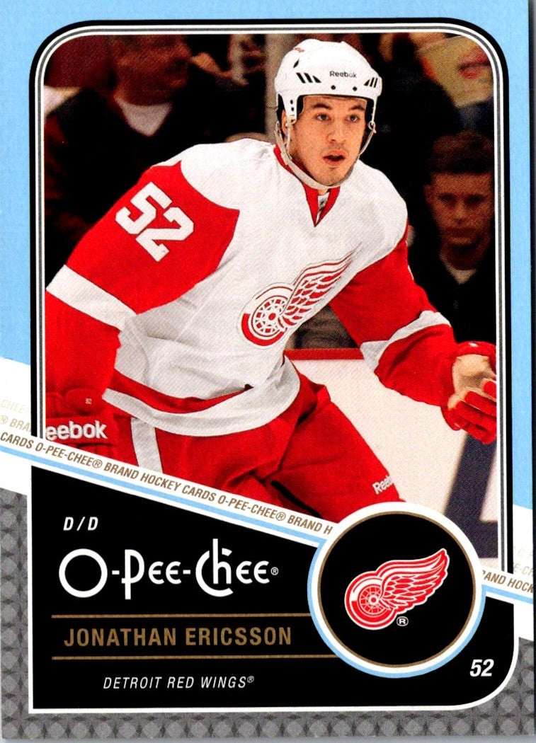 This 2011 O-Pee-Chee Jonathan Ericsson card is a must-have for any Detroit Red Wings fan! The card features a glossy finish with vibrant colors and crisp details. It is a great collectible to show your support for the team. This card is perfect for any hockey enthusiast or collector. Add this piece of memorabilia to your collection today!