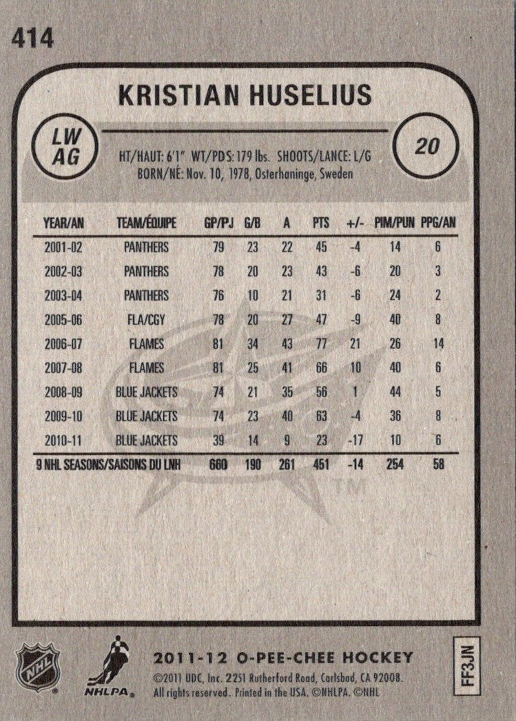 Description: 2011 O-Pee-Chee Kristian Huselius #414