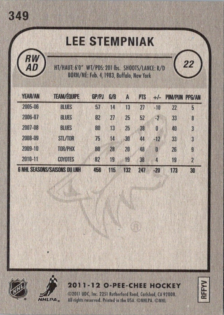 2011 O-Pee-Chee Lee Stempniak #349