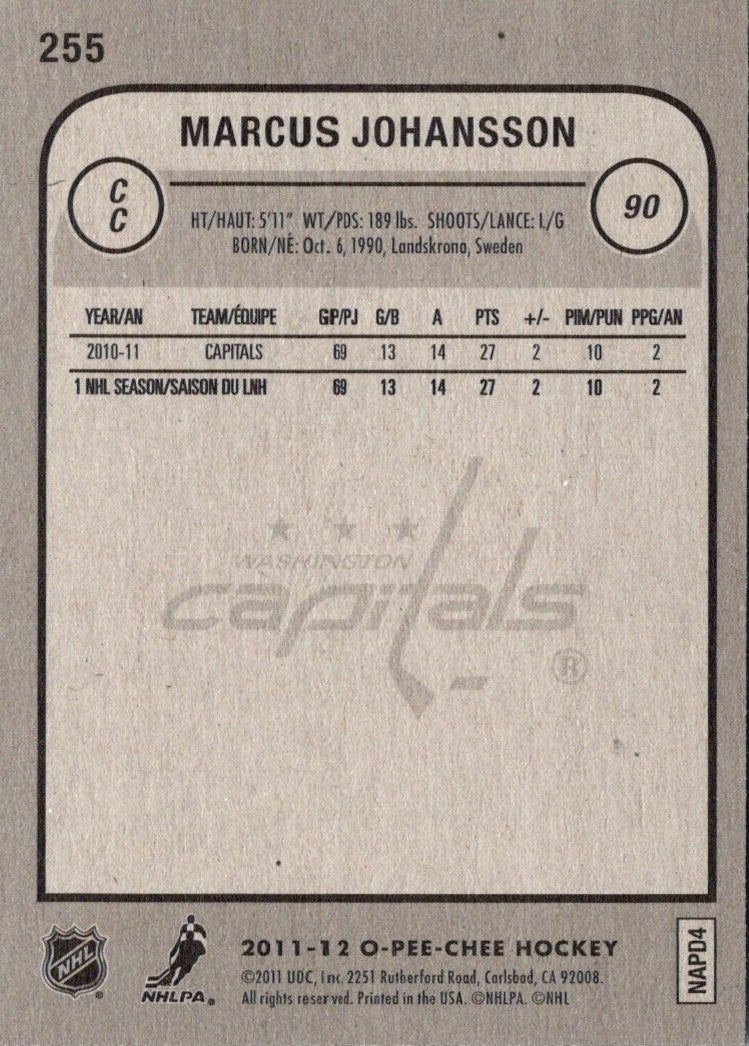 This 2011 O-Pee-Chee Marcus Johansson #255Washington Capitals card is a must-have for any Washington Capitals fan. Featuring the Swedish forward, this card features sharp photography and clear print. From the full-colour front to the detailed statistics on the back, this card is sure to be a favourite of any collector. Get your hands on one of these cards before they're gone!