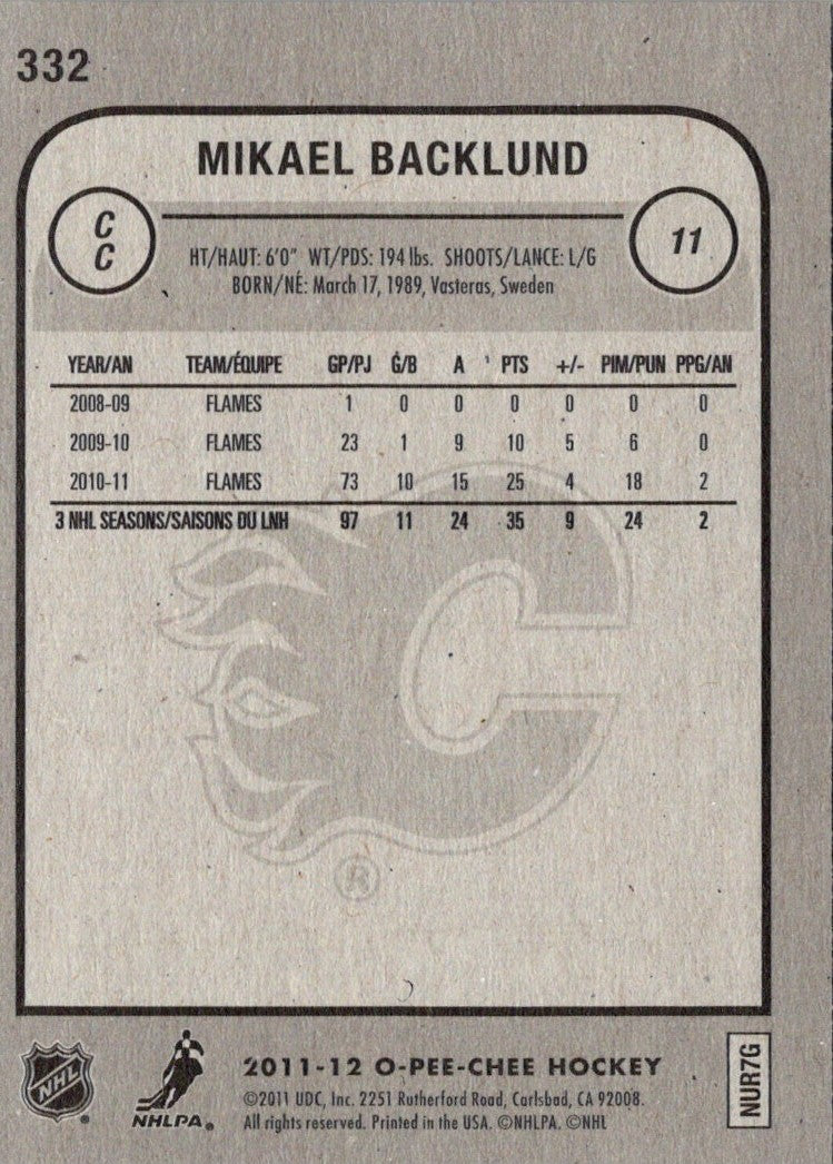 Description: 2011 O-Pee-Chee Mikael Backlund #332