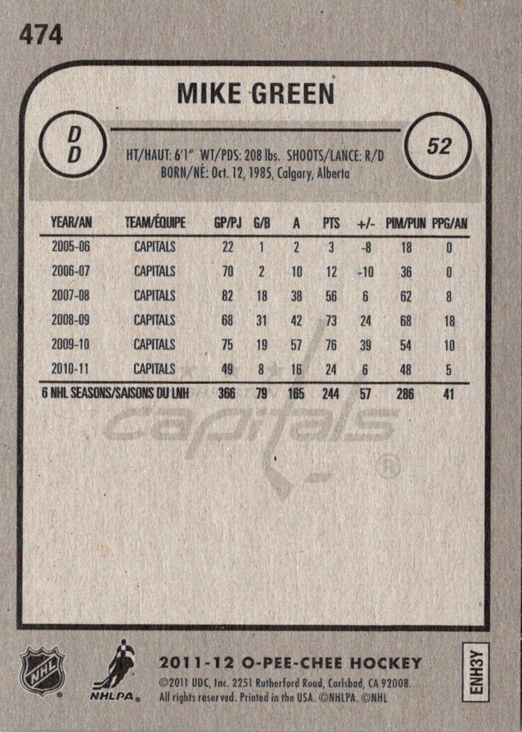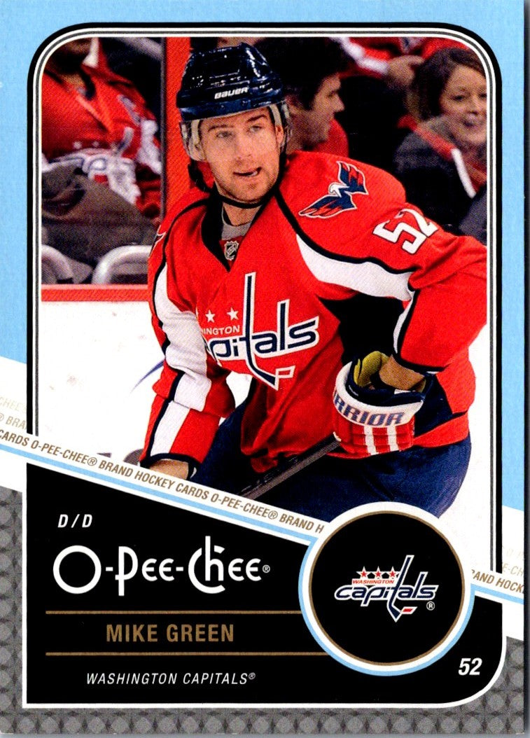 This 2011 O-Pee-Chee Mike Green card from the Washington Capitals is a must have for any hockey fan! Featuring a high-quality image of Green in full gear, this card is the perfect way to show your support for the Capitals. With its classic design and iconic team logo, this card will look great in any collection. Add this card to your collection today and let your Capitals pride shine!