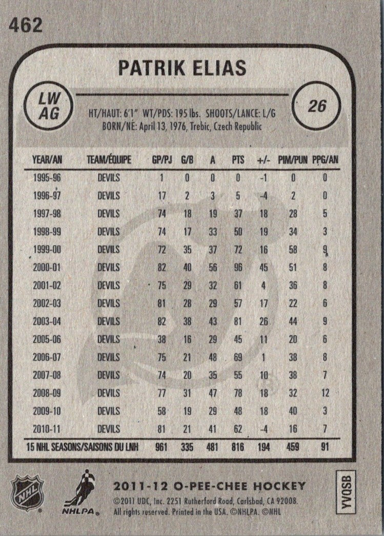 Description: 2011 O-Pee-Chee Patrik Elias #462