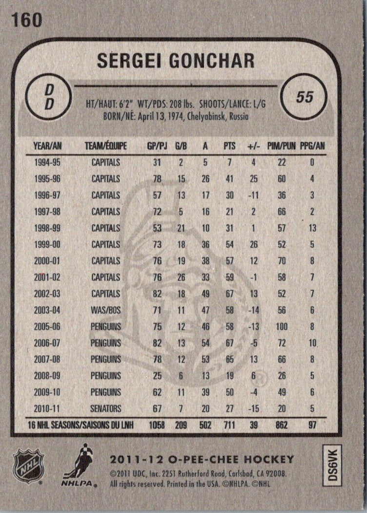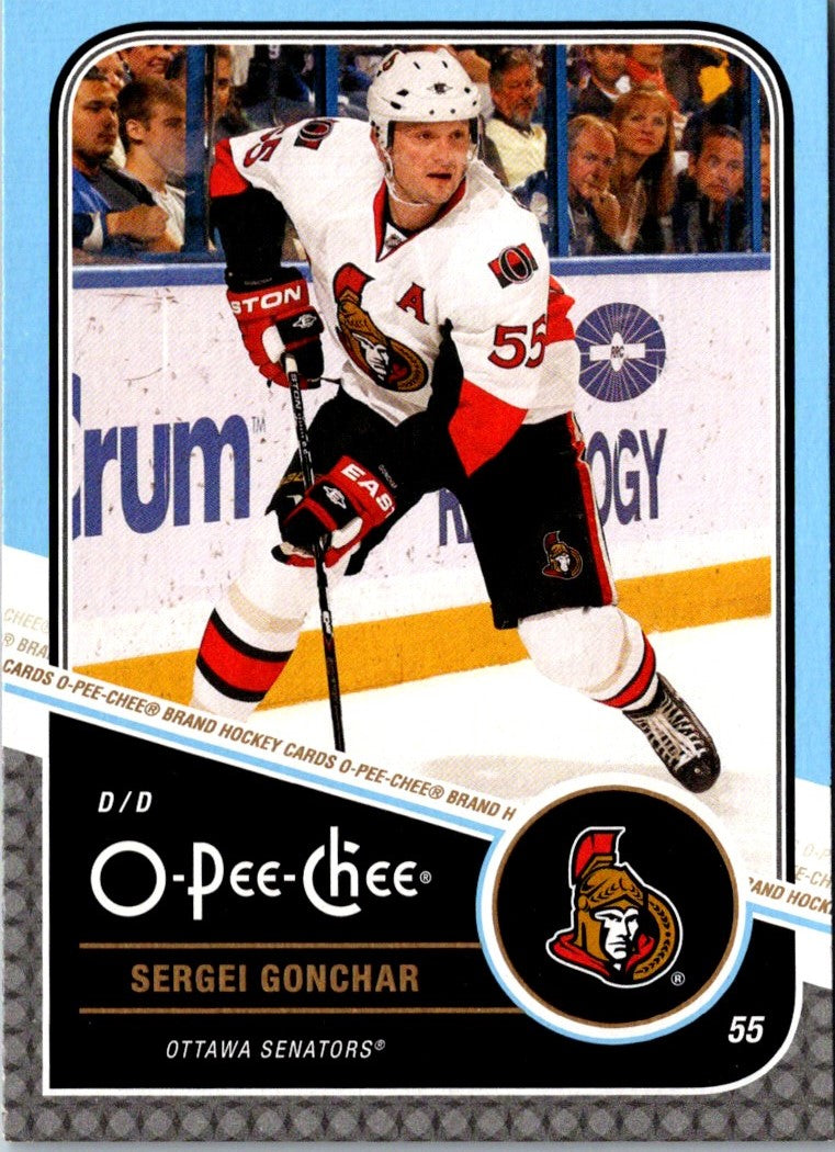 This 2011 O-Pee-Chee Sergei Gonchar card features the former Ottawa Senators player in full uniform. His hard-hitting style of play and powerful slap shot earned him the respect of both fans and players alike. With this card, you can relive the glory days of Gonchar's career and show your support for the Ottawa Senators. This card is perfect for any fan of the NHL or the Ottawa Senators. Add it to your collection today!