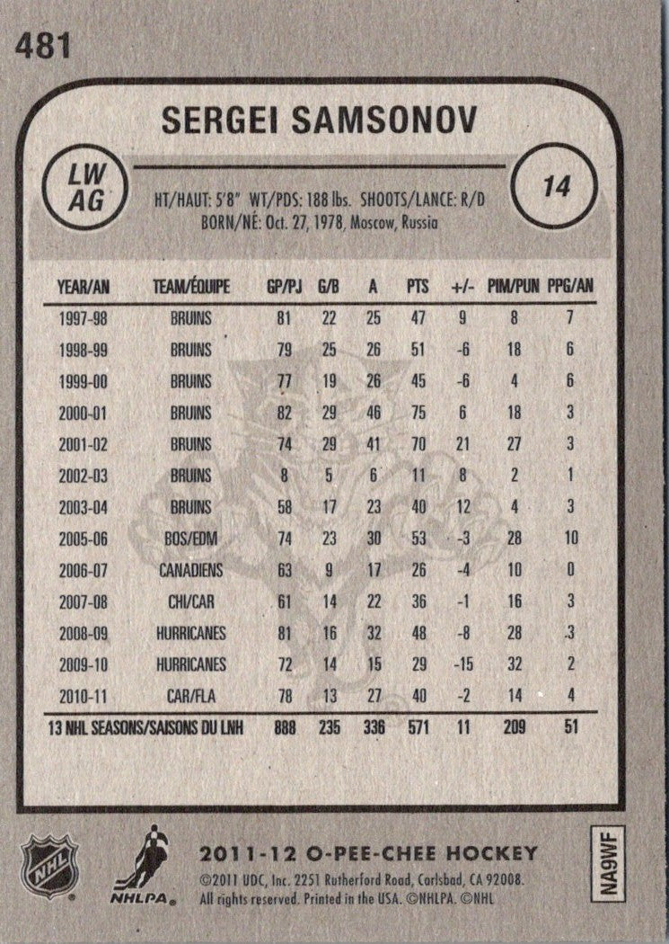 This 2011 O-Pee-Chee Sergei Samsonov card is a must-have for any Florida Panthers fan! Show your support for the star forward with this beautiful card that captures him in action for the team. Featuring a classic design with vibrant colors and crisp details, this card is sure to stand out in any collection. The card is the perfect way to honor the career of the former All-Star and Stanley Cup champion. Add this card to your collection today and never forget Sergei Samsonov's time with the Florida Panthers.