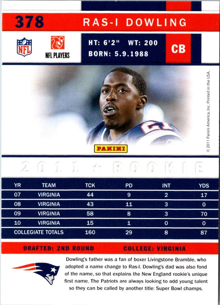 The 2011 Score Ras-I Dowling #378 New England Patriots card is an excellent pick for any sports card collector. Featuring a full-color action photo of Dowling in his Patriots uniform, this card is sure to make a great addition to any collection. The back of the card features a bio and career stats, so you can get to know the player and follow his career. Whether you are a Patriots fan or a sports card collector, this card is a must-have.