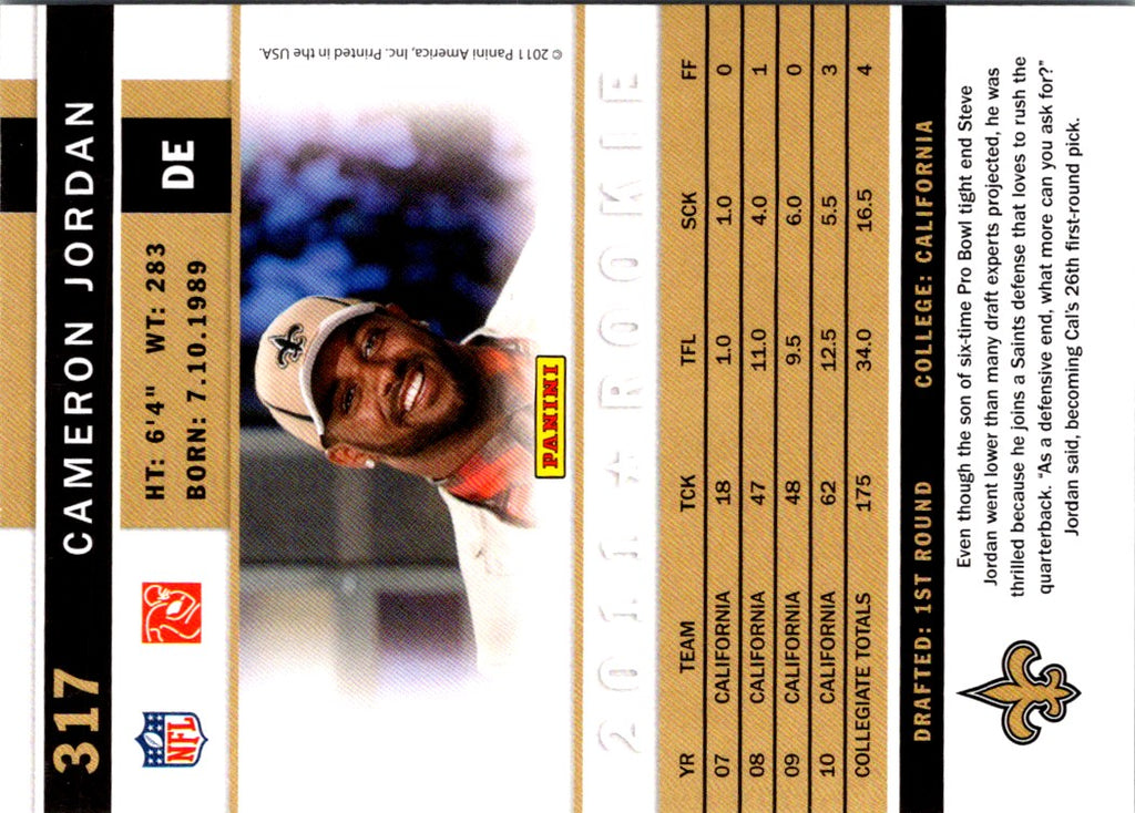 Description: 2011 Score Scorecard Cameron Jordan #317
