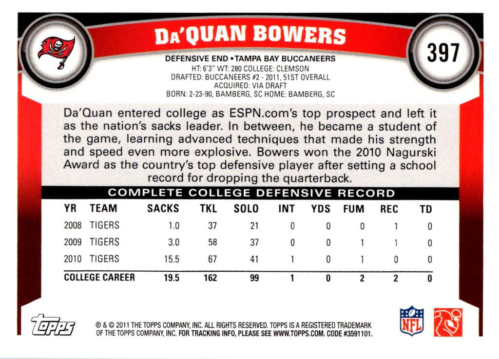 Description: 2011 Topps Da'Quan Bowers #397 Rookie