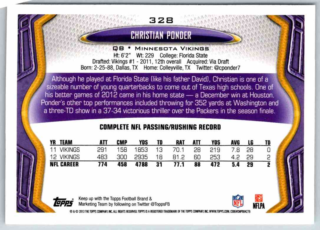 2011 Topps Football Christian Ponder #328