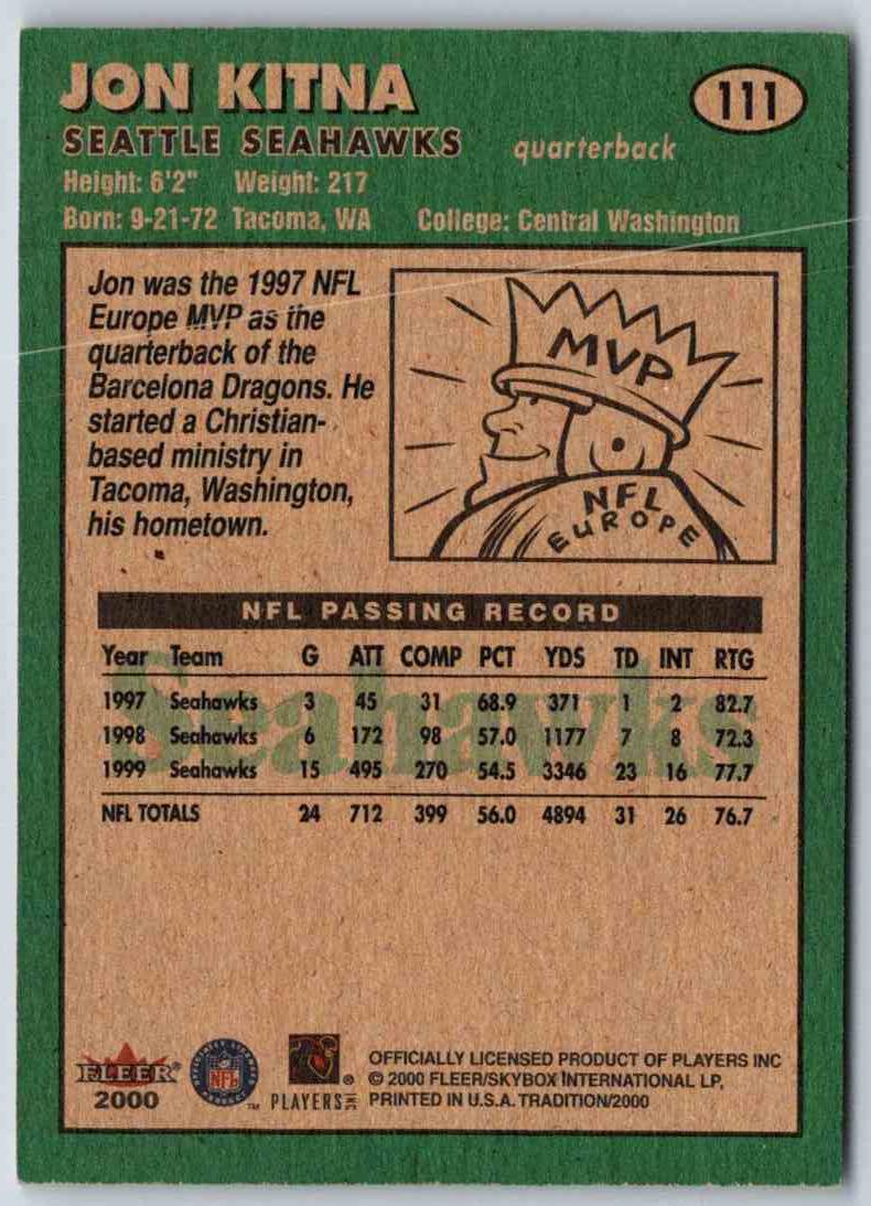 The 2011 Topps Football Jon Kitna #111 is a must-have for any fan of the Dallas Cowboys. Featuring a crisp, high resolution photo of the 4-time Pro Bowler, this card is a great addition to any collection. It also features a detailed summary of Kitna's impressive career on the back. With the card's vibrant colors and bold design, it will stand out from the rest in any collection. Perfect for any Cowboys fan or collector, the 2011 Topps Football Jon Kitna #111 is a must-have item.