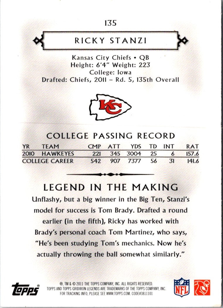 2011 Topps Gridiron Legends Ricky Stanzi #135