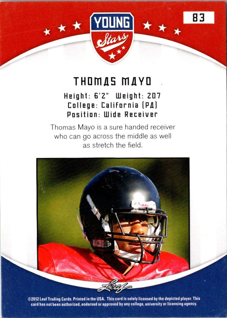 This 2012 Leaf Young Stars Thomas Mayo #83California PA Vulcans trading card is a must-have for any sports card collector. Featuring Mayo in a vibrant blue and white team uniform, this card is sure to stand out in any collection. The card also includes an action shot of Mayo in action, making it a great reminder of his impressive talent. The card is in near-mint condition, making it perfect for display or trading. Add this unique card to your collection today!