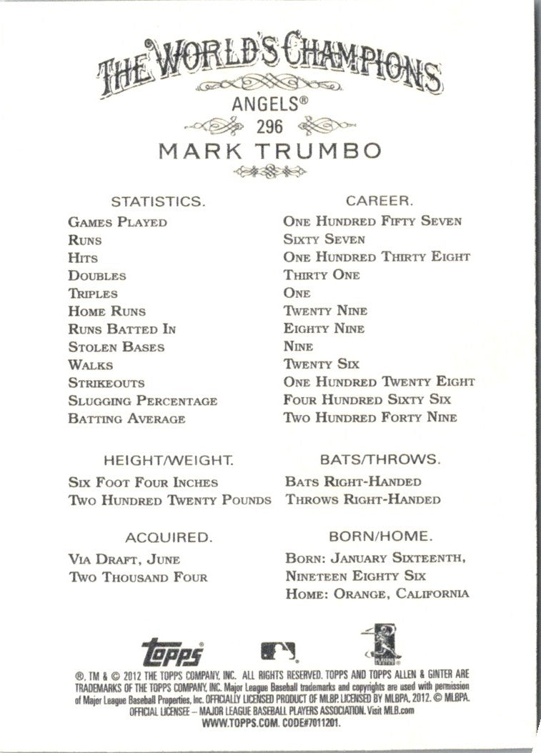2012 Topps Allen & Ginter Mark Trumbo #296