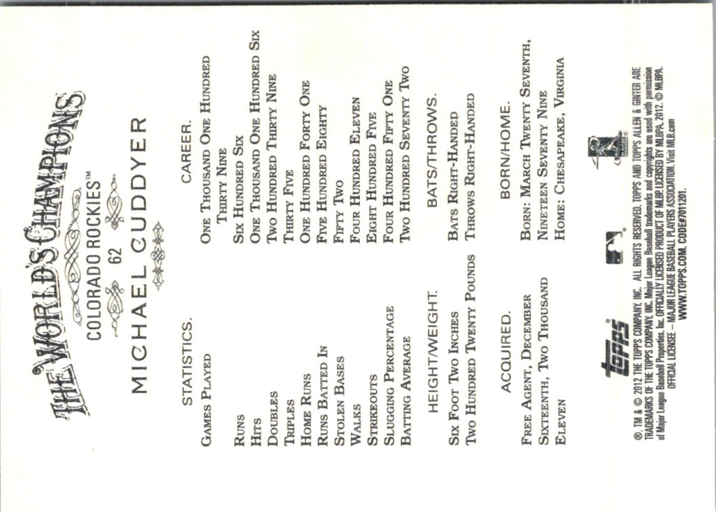 Description: 2012 Topps Allen & Ginter Michael Cuddyer #62