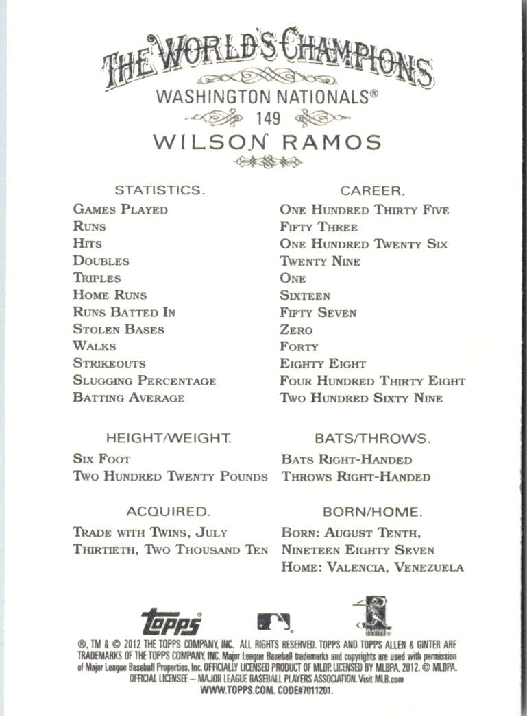 2012 Topps Allen & Ginter Wilson Ramos #149