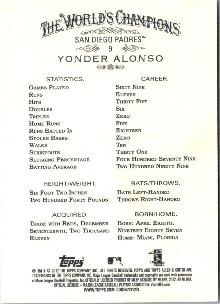 2012 Topps Allen & Ginter Yonder Alonso #9