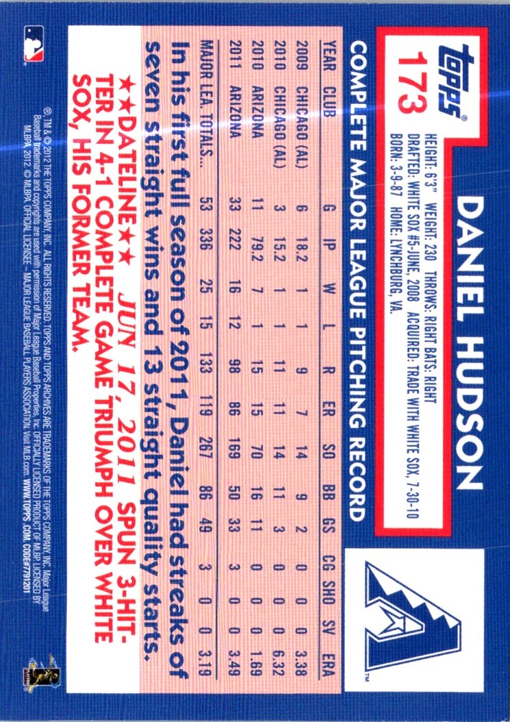 2012 Topps Archives Daniel Hudson #173