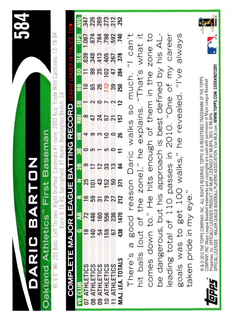 2012 Topps Daric Barton #584