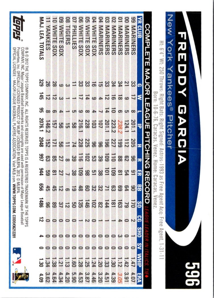 2012 Topps Freddy Garcia #596