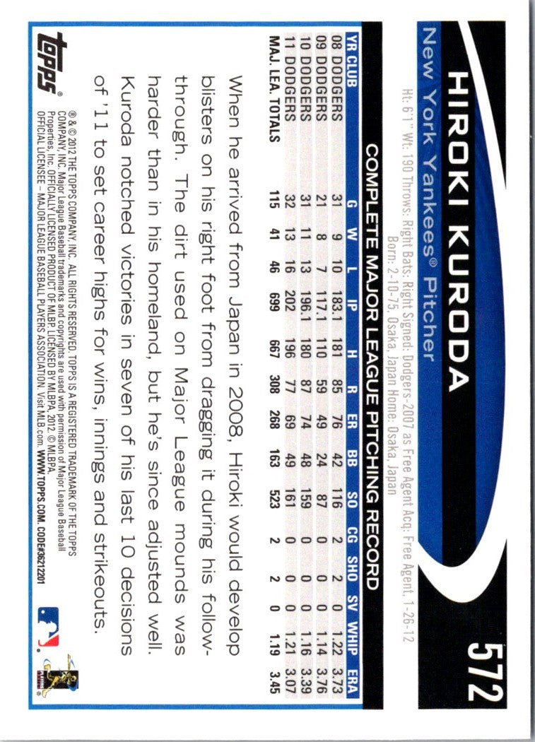 Description: 2012 Topps Hiroki Kuroda #572