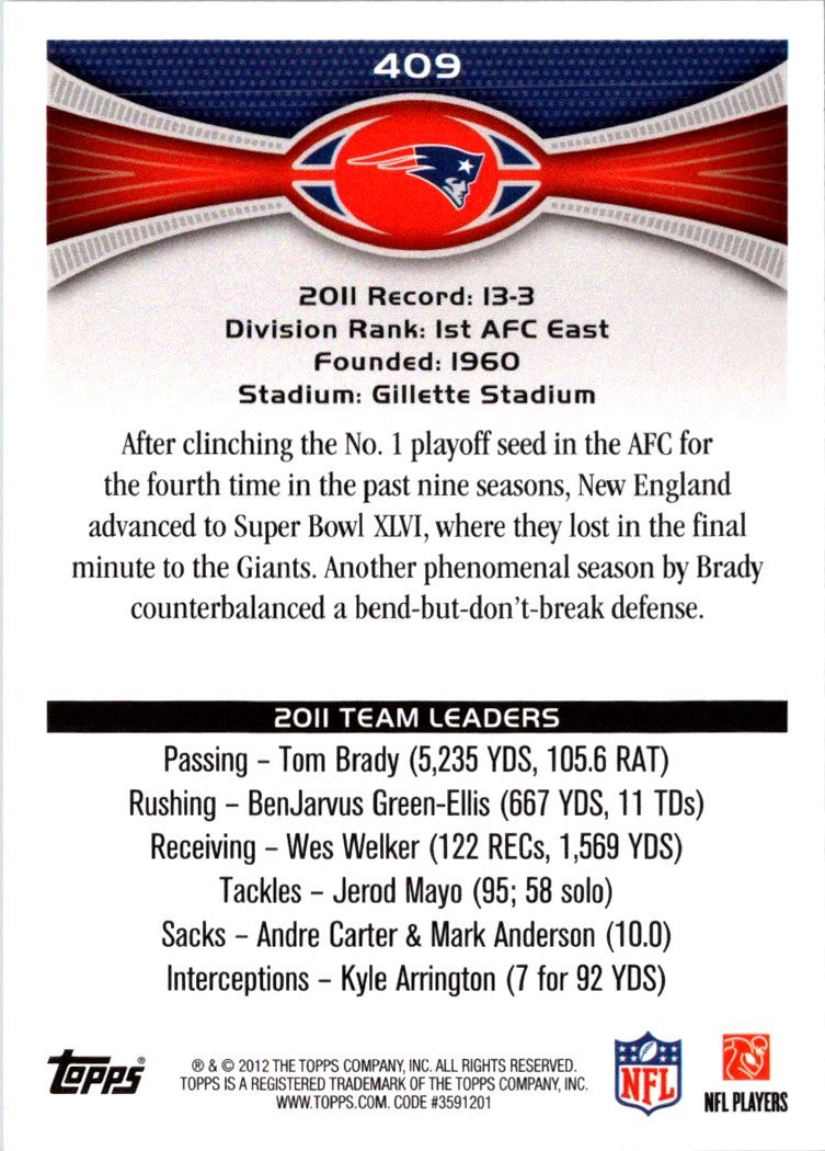 2012 Topps New England Patriots: Rob Gronkowski/Wes Welker #409