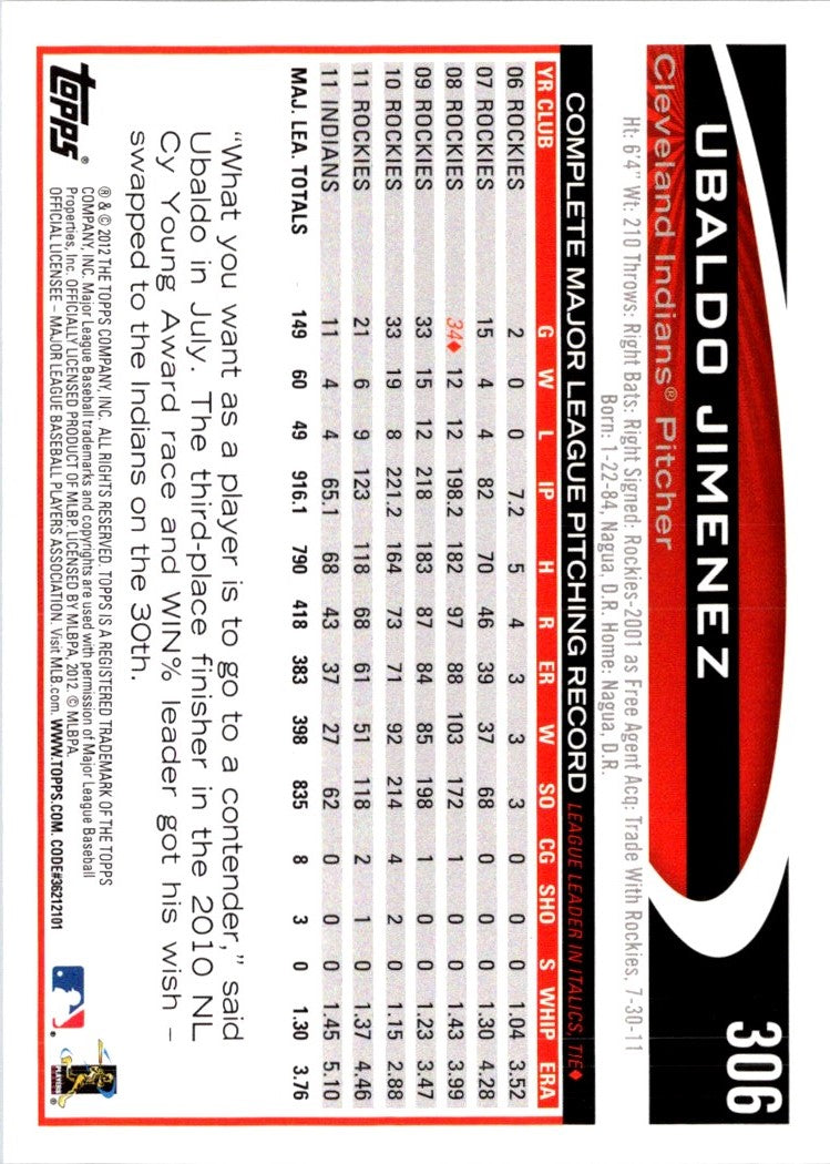 2012 Topps Ubaldo Jimenez #306