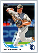 2013 Topps Update Ian Kennedy #US299 celebrates the career of this San Diego Padres pitcher. The card features a full-color image of Kennedy in his Padres uniform, ready to deliver a pitch. The back of the card includes his vital stats and a brief summary of his career. This card is a must-have for any fan of Kennedy or the Padres. It is the perfect way to honor the player's long and successful career.
