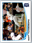 This 2013 Topps Update card features Matt Tuiasosopo in his Detroit Tigers jersey. The corner of the card contains the 2013 Topps Update logo, with the back of the card providing Tuiasosopo's career stats. This card is perfect for any Detroit Tigers fan, or for any collector of Tuiasosopo's cards. Add this card to your collection today!