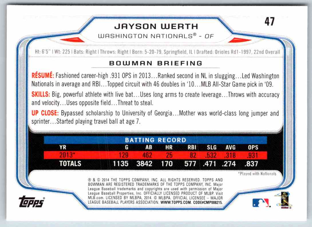 2014 Bowman Jayson Werth #47