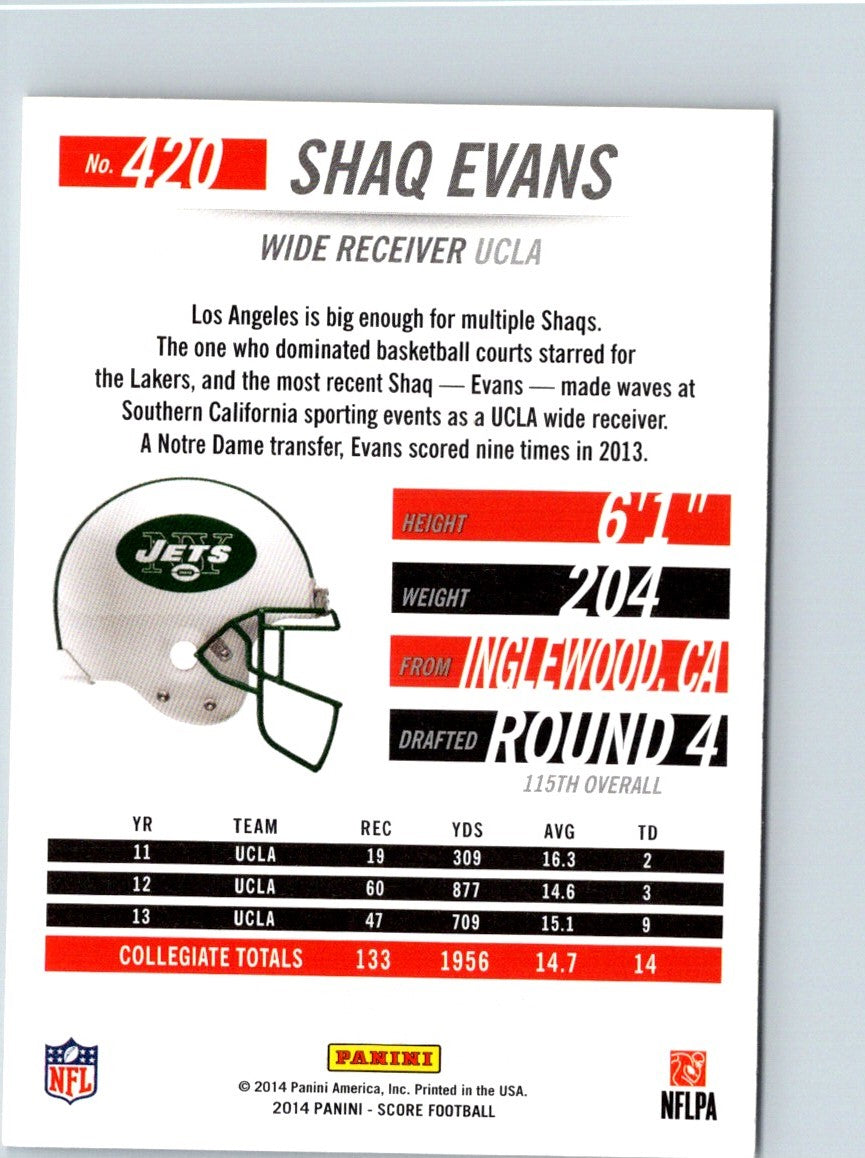 Description: 2014 Score Shaq Evans #420 Rookie