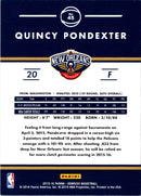 The 2015 Donruss Quincy Pondexter #45 New Orleans Pelicans card captures the NBA star at the peak of his game. Featuring a high-quality image of Pondexter in his Pelicans uniform and a full-color background, this card is sure to be a must-have item for any basketball fan. The card also includes a detailed stats section, showing Pondexter's impressive stats from the 2014-15 season. With its bold design and high-quality paper stock, this card is sure to make a great addition to any collection. Don't miss your chance to add this amazing card to your collection today!