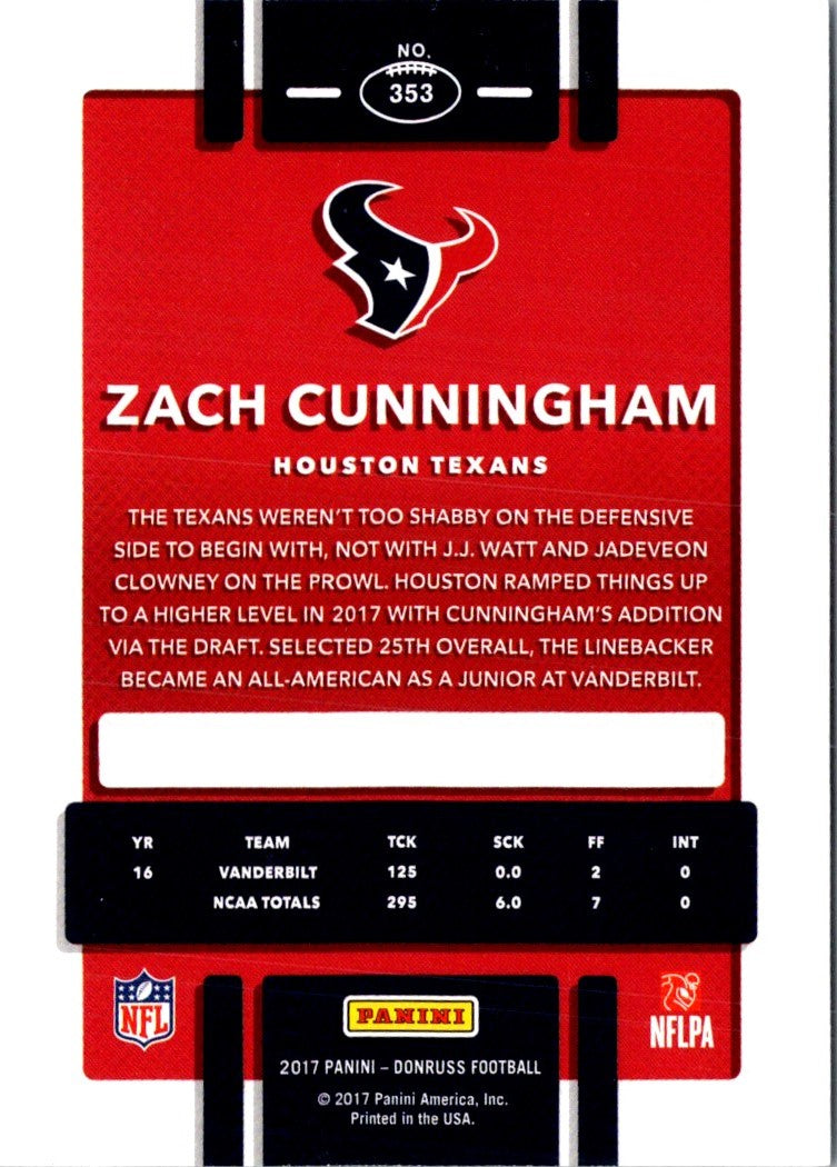 Description: 2017 Donruss Press Proof Red Zach Cunningham #353