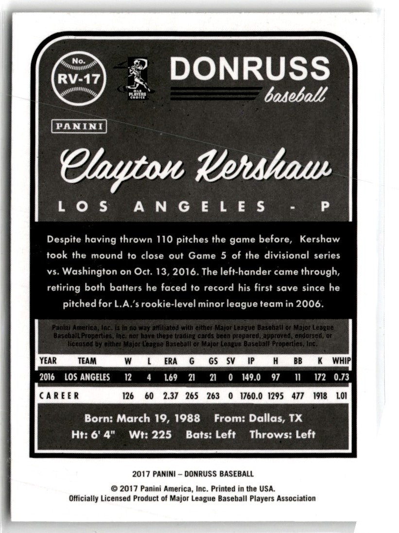 Description: 2017 Donruss Retro Variations 1983 Clayton Kershaw #RV-17