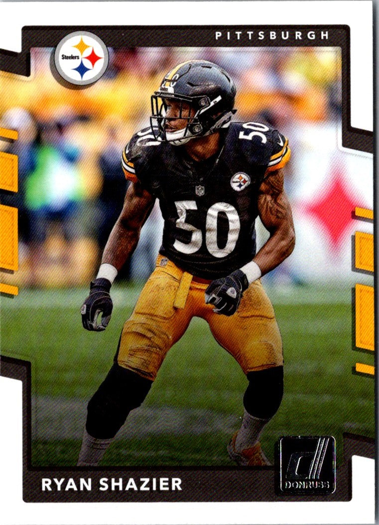 Ryan Shazier is a star in the NFL, playing for the Pittsburgh Steelers. This 2017 Donruss card celebrates his talent and athleticism on the field. It features a full-color action shot of Shazier in his signature black and yellow Steelers uniform. The back of the card includes detailed information about his career stats and accomplishments, making it a great collectible for any Steelers fan. Add this card to your collection and show your support for one of the NFL's top players!